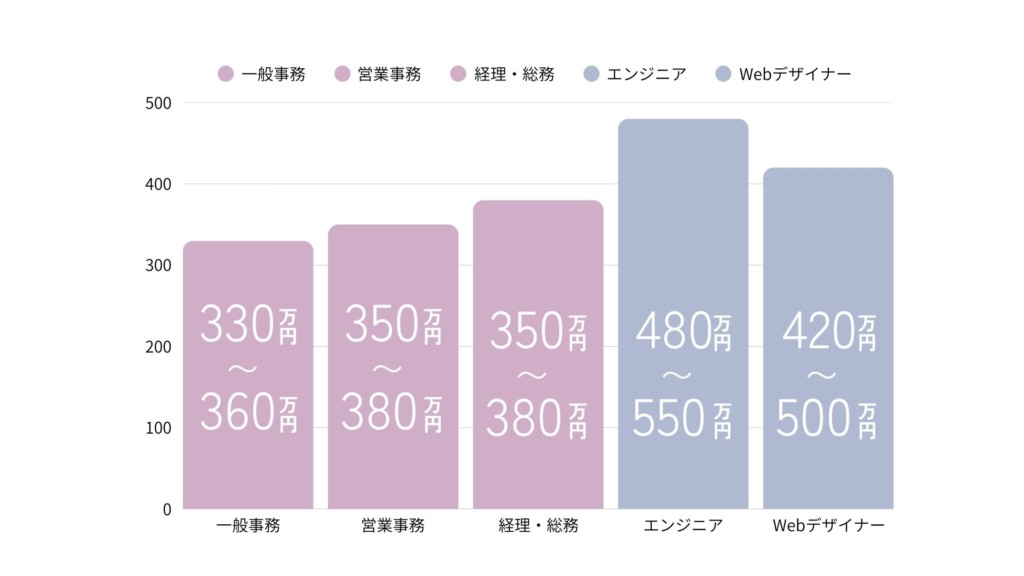 事務職と他の職種の平均年収を比較してみました。